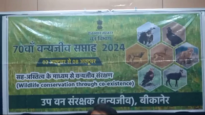 इनडोर ऑडिटोरियम भवन, वेटरनरी विश्वविद्यालय, राजुवास, बीकानेर में 70 वे वन्य प्राणी सप्ताह 2024 के समापन समारोह का आयोजन किया गया। जिसमें मुख्य अतिथि पशुपालन विभाग से डॉ.राजेश हर्ष,डॉ. गजेन्द्र…