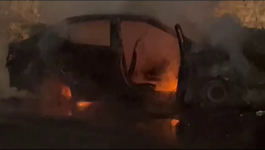 खड़ी जेसीबी मशीन से कार टकराने पर कार में लगी आग देखे वीडियो