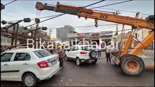 बीकानेर।शहर में तेज आंधी और बारिश के चलते पवनपुरी मुख्य मार्ग पर दो विद्युत ट्रांसमिशन टावर गिर गए, जिससे इलाके में अफरातफरी मच गई। हादसे में महिला थाना में तैनात…
