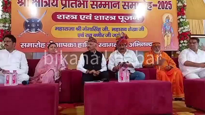 एंकर – बीकानेर में विजयदशमी के पर्व पर आज क्षत्रिय सभा की और से बीदासर हाउस में शस्त्र एवं शास्त्र पूजन का कार्यक्रम आयोजित किया गया। कार्यक्रम के मुख्य अतिथि…