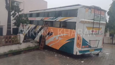 बस अनियंत्रित होकर घुसी गौतम आश्रम की दीवार में