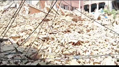 सदर बाजार में जर्जर बिल्डिंग हुई जमींदोज बाल-बाल बची बुजुर्ग महिला