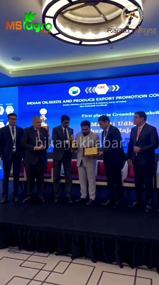 बीकानेर जिला उद्योग संघ के अध्यक्ष द्वारकाप्रसाद पचीसिया ने बताया कि दुबई के जे डब्ल्यू मेरियट मारकिस होटल 01 नवंबर 2025 को आयोजित भारतीय तिलहन एवं उत्पाद निर्यात संवर्धन परिषद की प्रतिष्ठित अंतर्राष्ट्रीय वैश्विक तिलहन सम्मेलन में बीकानेर जिला उद्योग संघ की सदस्य इकाई मारूति उद्योग नोखा को छिलके सहित मूंगफली का सर्वाधिक निर्यात श्रेणी में उत्कृष्ट प्रदर्शन करने पर अंतर्राष्ट्रीय मंच पर लगातार चौथे वर्ष सम्मानित किया गया है | यह पुरस्कार न केवल कंपनी की मेहनत, गुणवत्ता और निरंतर नवाचार का प्रतीक है, बल्कि यह भारत के कृषि उत्पादों को वैश्विक स्तर पर मजबूत पहचान दिलाने का प्रमाण भी है । मारुती उद्योग के निदेशक श्री राजेश झंवर ने बताया कि यह सम्मान हमारे सभी किसानों, कर्मचारियों, व्यावसायिक सहयोगियों और शुभचिंतकों के अथक प्रयासों का परिणाम है । हमारी प्राथमिकता हमेशा उच्च गुणवत्ता वाले भारतीय कृषि उत्पादों को विश्व बाजार में पहुँचाना और देश की साख को ऊँचा उठाना रही है । मारुती उद्योग मोहनलाल सत्यनारायण झंवर, नोखा ग्रुप से संबद्ध है । हमारे इसी समूह की अन्य इकाइयाँ बालाजी उद्योग तथा मुरली फ्लोर मिल्स भी स्थानीय कृषि उत्पादों का निर्यात कर रही हैं । इन इकाइयों के निरंतर प्रयासों से नोखा, बीकानेर क्षेत्र को कृषि और कृषि-आधारित उद्योगों के क्षेत्र में नई पहचान प्राप्त हो रही है । गुणवत्तापूर्ण उत्पादन, पारदर्शी व्यापार नीति और किसानों के साथ मजबूत संबंधों के चलते आज हमारा मोहनलाल सत्यनारायण झंवर, नोखा ग्रुप अंतरराष्ट्रीय बाजार में एक विश्वसनीय नाम बन चुका है । आपको बता दें कि इस सम्मेलन में भारत सहित विश्वभर के अनेक देशों के प्रतिनिधि, तेल बीज निर्यातक और कृषि उत्पाद विशेषज्ञ शामिल हुए । सभी ने भारतीय मूंगफली के निर्यात में मारुती उद्योग द्वारा स्थापित किए गए मानकों की सराहना की ।