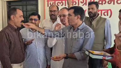 कांग्रेस की जीत पर देहात कांग्रेस कार्यालय में दोपहर 1ः30 बजे जश्न कार्यक्रम हुआ आयोजित, जिसमें शहर व देहात के कांग्रेसजनों ने एक-दूसरे को लड्डू खिलाकर मुंह मीठा कराकर मनाई खुशियां।