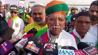 एंकर-बीकानेर में पहली बार आयोजित हो रही “टूर द थार” अंतरराष्ट्रीय साइकिल रैली का आगाज आज नोरंगदेसर स्थित भारतमाला सड़क पर हुआ। केंद्रीय कानून मंत्री ने हरी झंडी दिखाकर 100,200 किलोमीटर के इवेंट की शुरुआत की। इस दौरान केबिनेट मंत्री सुमित गोदारा,विधायक डॉ विश्वनाथ मेघवाल,ताराचंद सारस्वत सहित साइकलिंग फेडरेशन ऑफ इंडिया के अधिकारी मौजूद रहे। केंद्रीय मंत्री मेघवाल ने कहाकि यह आयोजन फ्रांस में होता था इस इवेंट से वहा पर्यटन को बढ़ावा मिला। हमारे यहां भी साइकलिंग में अच्छा स्कोप है। नोरंगदेसर में जब पीएम यहां उद्धघाटन पर आए तो साइकलिस्ट ने उनका स्वागत किया इस लिए इस स्थान पर यह आयोजन किया गया हैं इस कार्यक्रम में देश और विदेश के साइक्लिस्ट भाग लिया फ़्रांस,सिंगापुर व स्विजरलैंड के साइक्लिस्ट ने रजिस्टेशन करवाया है। कुल 750 साइक्लिस्ट इस इवेंट में भाग लिया। इस इवेंट में विजेताओं को पुरुस्कार की नगद राशि भी दी जाएगी। उन्होंने कहाकि कार्बन एमिशन कम करने,साइक्लिंग को बढ़ावा देने और पर्यटन को बढ़ावा देने के लिए यह आयोजन किया जा रहा है।