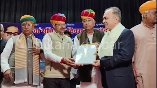 एंकर – बीकानेर में आज संविधान दिवस की पूर्व संध्या पर रंविन्द्र रंगमंच पर संविधान दिवस समारोह का आयोजन किया गया।केन्द्रीय कानून मंत्री अर्जुनराम मेघवाल,विधायकविश्वनाथ मेघवाल,ताराचन्द सारस्वत,जेठानन्द व्यास सहित अतिथि मौजूद रहे। भारतीय संविधान को देश को समर्पित हुए 77 वर्ष पूर्ण होने के उपलक्ष में चिकित्सकों को संविधान की प्रति भेंट कर सम्मानित किया गया। केंद्रीय कानून मंत्री अर्जुनराम मेघवाल ने कहाकि मोदी सरकार ने इसे कानून दिवस के स्थान पर संविधान दिवस के रूप में मनाया शुरू किया तभी से हम यह समारोह मनाकर बाबा साहेब अंबेडकर के संविधान निर्माण में योगदान को याद करते है संविधान के अनुसार देश का निर्माण कर सके। वही उन्होंने बंगाल की सीएम ममता बनर्जी के भाजपा की नीव हिलाने के बयान पर पलटवार करते हुए कहाकि भाजपा ममता जी की धमकी से डरने वाली नहीं है। हर चुनाव में वो ऐसी धमकी देती रही है। अभी चुनाव आने वाला है इस लिए ऐसी धमकी दे रही है। भाजपा सुशासन देगी विकास करेगी लोकतंत्र में धमकी को कोई स्थान नही है। जब वोट बैंक व तुष्टिकारण की राजनीती होती है तो नीतिया सही नहीं बनती है। वही उन्होंने कांग्रेस नेता उदितराज के रामभद्राचार्य पर दिए बयान पर कहाकि जो भाषा कांग्रेस बोलती है वो भी वही भाषा बोलते है, सभी को भाषा की मर्यादा रखनी चाहिए।