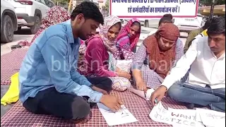 बीकानेर के मेडिकल कॉलेज से अधिशेष हुए यूटीवी नर्सिंग ऑफिसर्स ने आज मेडिकल कॉलेज प्राचार्य डॉ सुरेंद्र वर्मा को अपने खून से पत्र लिखा और उन्हें जल्द समायोजित करने की मांग रखी। अधिशेष यूटीबी नर्सिंग ऑफिसर रियासुदीन राठौड़ ने कहाकि पिछले तीन दिन से अपनी मांग को लेकर सांकेतिक धरना प्रदर्शन कर रहे हैं लेकिन अभी तक सुनवाई नहीं हुई है। ऐसे में अब हमने अनिश्चितकालीन धरना लगाते हुए भूख हड़ताल भी शुरू कर दी है। उन्होंने कहाकि कई वर्षों से हम यहां नर्सिंग ऑफिसर के पद पर कार्यरत थे लेकिन अब उन्हें अधिशेष कर दिया है जबकि यहां अभी भी पद खाली है। ऐसे में जल्द से जल्द उनका समायोजन किया जाए।