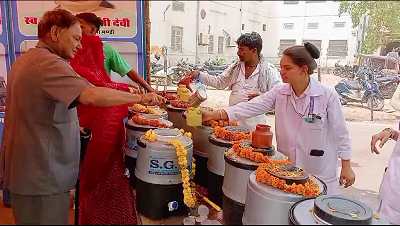 समाजसेवी देवचंद जी लावटw/o का शारदा देवी लावट नेअपनी 52 भी शादी की वर्ष गांठ पर पीबीएम अस्पताल परिसर में मरीज के परिजनों को ठंडा जलकर पिलाकर मनाई शादी की वर्षगांठ