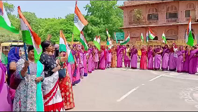 बीकानेर में आज आंगनबाड़ी कार्यकर्ताओ ने जिला कलेक्ट्रेट से पब्लिक पार्क तक तिरंगा यात्रा निकली। इस यात्रा में बड़ी संख्या में आंगनबाड़ी कार्यकर्ता मौजूद रही। यात्रा के दौरान कार्यकर्ताओ ने वंदे मातरम व भारत माता की जय के साथ उद्घोष किया। उपनिदेशक महिला एव बाल विकास सुभाष बिश्नोई ने बताया की लोगो में राष्ट्रीय भक्ति की भावना को जाग्रत करने और राष्ट्रिय चिन्हों के सम्मान के लिए यह कार्यक्रम आयोजित किया गया है।