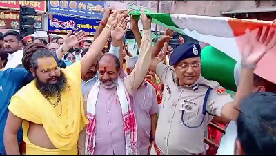 स्कूली बच्चों ने थामा तिरंगा,रखी शान,फिर बना इतिहास बीकानेर। छोटे-छोटे स्कूली बच्चों से लेकर बुजुर्ग,युवा सब दूर तक क तार में मौजूद। चारों ओर गूंज रहे देशभक्ति के तराने। ईमान तिरंगा है,मेरी जान तिरंगा. है के देशभक्ति गीत…..। यह नजारा कोटगेट से दाउजी रोड तक देखने को मिला मौका था स्वतंत्रता दिवस के उपलक्ष में भारतीय जनता पार्टी युवा मोर्चा की ओर से निकाली गई एक किलोमीटर लंबे तिरंगे की यात्रा। भाजयुमो की शहर व देहात इकाई की ओर से निकाली गई तिरंगे की इस एक किलोमीटर लंबी यात्रा के बीच 21 ठहराव के प्वाइ ंट रखे ताकि हाथों में थमा तिरंगा नीचे जमीन की ओर न झुके। एक किलोमीटर से ज्यादा लंबे तिरंगे के साथ बीजेपी कार्यकर्ताओं बीकानेर की जनता के साथ साथ स्क ूली बच्चों को जोश देखते ही बन रहा था। प्रारंभ स्थल से लेकर अंतिम छोर तक पूरे रास्ते छतों पर लोग एक किलोमीटर लंबे तिरंगे को देखने के लिए खड़े नजर आए। इस दौरान हर तिरंगा अभियान के तहत लोग हाथों में तिरंगा भी लिए हुए थे। जगह जगह पुष्प वर्षा कर स्वागत सत्कार किया गया। इस मौके पर आईजी ओमप्रकाश,संत सरजूदास महाराज,शहर भाजपा जिलाध्यक्ष विजय आचार्य,देहात अध्यक्ष जालम सि ंह,महावीर रांका आदि मौके पर मौजूद रहे। युवा मोर्चा जिला अध्यक्ष वेद व्यास ने बताया कि प्रधानमंत्री नरेंद्र मोदी ने राष्ट्र के नाम अपने संबोधन में नागरिकों से हर घर तिरंगा आंदोलन में सक्रिय रूप से भाग लेने का आग्रह करते हुए कहा था कि यह स्वत ंत्र एवं राष्ट्रीय एकता की भावना का प्रतीक है प्रत्येक भारतीय का तिरंगे के साथ भावनात्मक जुड़ाव है। यह हमें राष्ट्रीय प्रगति की ओर आगे बढ़ाने के लिए कड़ी मेहनत करने के लिए प्रेरित करता है। देहात युवा मोर्चा जिलाध्यक्ष जसराज सिंवर ने कहा कि आजादी का अमृत महोत्सव समारोह में हिस्से के रूप में यह कार्यक्रम किया गया था। जिला मीडिया प्रभारी विक्रम सिंह राजपुरोहित ने बताया कि एक किलोमीटर तिरंगे के साथ साथ देशभक्ति गीतों का आयोजन हुआ और सामूहिक राष्ट्रगान व आतिशबाजी क र कार्यक्रम का समापन किया। नहीं दिखे विधायकगण,पार्षद प्रधानमंत्री नरेन्द्र मोदी के आह्वान पर किये गये इस आयोजन में भाजपा के विधायक व बड़ी संख्या में पार्षद भी नदारद रहे। हालात यह रहे कि शहर व देहात भाजपा की क ार्यकारिणी के अलावा मोर्चो के पदाधिकारी भी न के बराबर आएं। ऐसा लग रहा था कि स्कूली बच्चों के भरोसे इस आयोजन ने राष्ट्र भक्ति का जज्बा पैदा किया।
