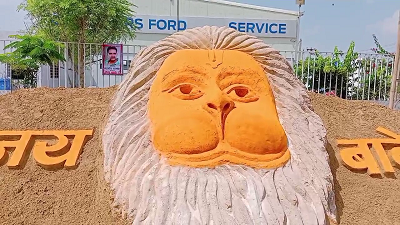 बीकानेर से 60 किलोमीटर दूर पूनरासर हनुमान मंदिर में भरने वाले मेले को लेकर शहर से हजारों की तादाद में पदयात्रा रवाना हो चुके हैं।ऐसे में बीकानेर के कलाकारों ने जयपुर रोड सुनहरी रेत पर हनुमान जी की प्रतिमा उकेरी है जो सभी के लिए आकर्षण का केंद्र बनी हुई है।सैंड आर्टिस्ट महावीर स्वामी की टीम ने इस प्रतिमा का निर्माण किया है